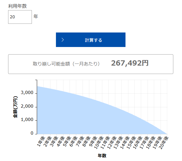 例えば、3,500万円を20年間かけて取り崩しながら運用すると、