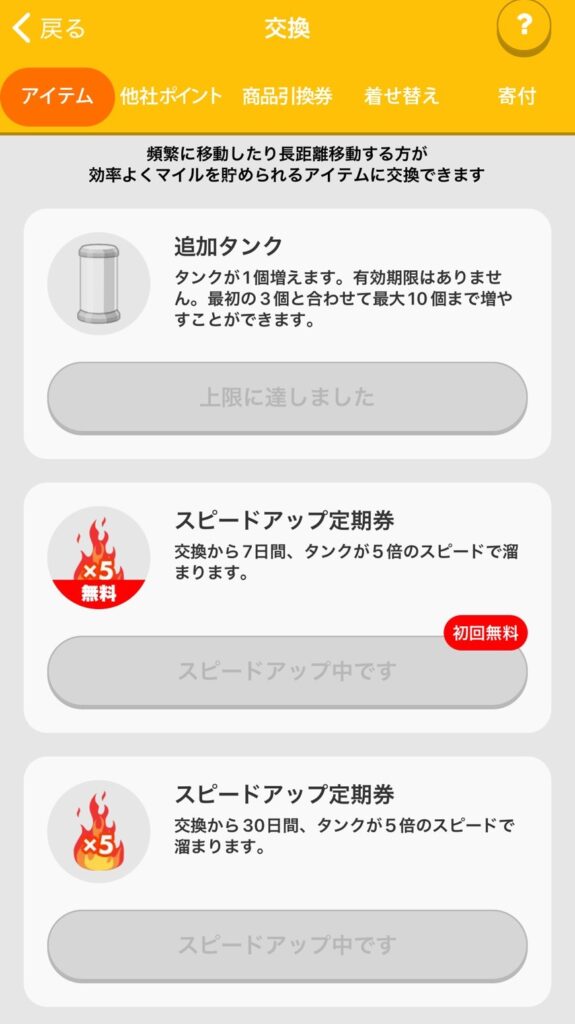 移動で効率的にタンクを貯めるためのアイテムがあるので